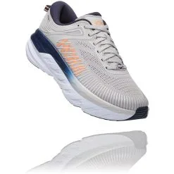 The most cushioned shoe in the HOKA road-shoe lineup, the game-changing Bondi 7 delivers a smooth, balanced ride over any distance. Engineered with the same full EVA midsole, breathable mesh upper and signature Meta-Rocker technology as its predecessor, the Bondi 7 is updated with a supremely plush collar. Made from ultra-soft memory foam designed to accommodate a narrower heel, the collar conforms to a wide variety of ankles, cradling the Achilles in cushy comfort. Unquestionably, the Bondi 7 will take you far and wide.